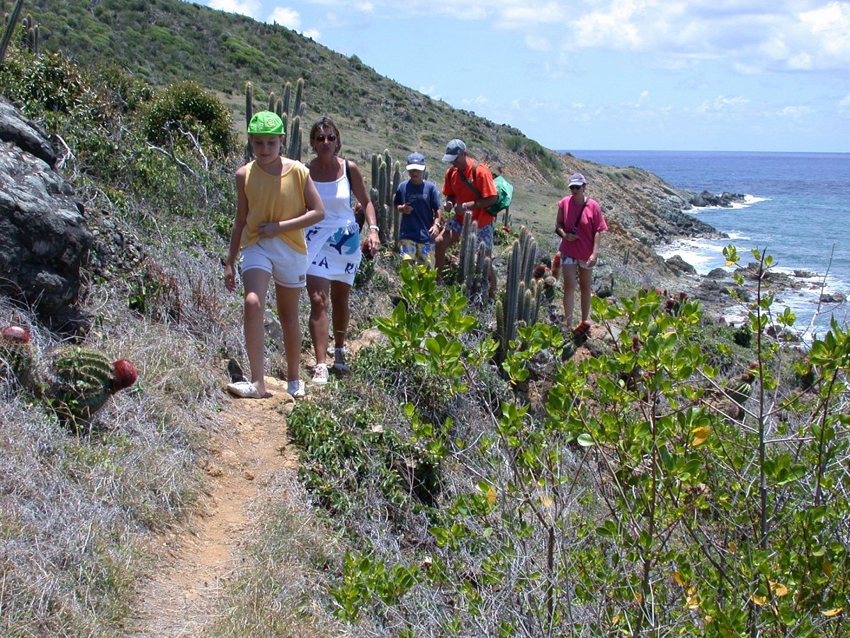 The turn-around point is Geneve Bay where we will take a couple of minutes to sit down and relax while listening to the music of the pebbles in the surf. The way back follows the same trails to Guana Bay Beach where you can take off your shoes and cool your feet in the crystal clear Caribbean Sea while walking along this pristine beach – a cold refreshment is waiting for you at the end.